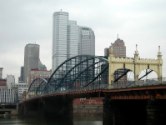 The Smithfield Street Bridge is a lenticular truss bridge crossing the Monongahela River in Pittsburgh. The bridge was built between 1881-83, opening for traffic on March 19, 1883. The bridge has been designated a National Historic Civic Engineering Landmark, a National Historic Landmark, and has a Historic Landmark Plaque from the Pittsburgh History and Landmarks Foundation. The bridge connects Smithfield Street in Downtown Pittsburgh with Station Square.
