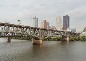 The Liberty Bridge, completed in 1928, connects downtown Pittsburgh, Pennsylvania to the Liberty Tunnels and the South Hills neighborhoods beyond. It crosses the Monongahela River and intersects Interstate 579 at its northern terminus. Liberty Bridge was constructed as the missing link between downtown and Liberty Tunnel, which had been constructed four years earlier in 1924 as a link to the South Hills.
